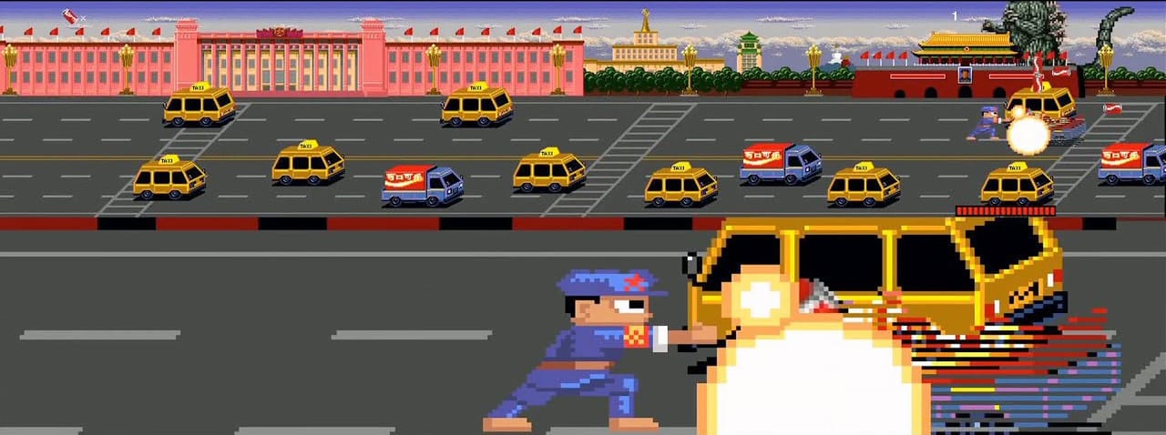The work carries an unusually dense institutional record: acquired by MoMA in 2009, exhibited at PS1 in 2010, featuring dual large-scale projections (approximately 80 by 20 feet) that dwarf the viewer-player. The PS1 presentation emphasized the installation’s spatial ambition and its departure from conventional gaming interfaces). The work was subsequently presented at ZKM in Karlsruhe, Germany, as part of their game art programming, positioning it within the institution’s sustained critical engagement with interactive media and playable art since the 1990s. It was also contextualized through UCCA’s Restart exhibition (2009), which traced the piece back to Feng's earlier Game Over: Long March paintings. This genealogy matters because it shows the translation of painterly syntax into interactive systems, a shift in material logic rather than mere remediation. Finally, LACMA acquired the work in 2014, with curator Christina Yu Yu describing it as “one of the most iconic artworks created by a Chinese artist in the past 30 years”, reinforcing its canonical status beyond new media/Game Art circles and into broader contemporary Chinese art discourse