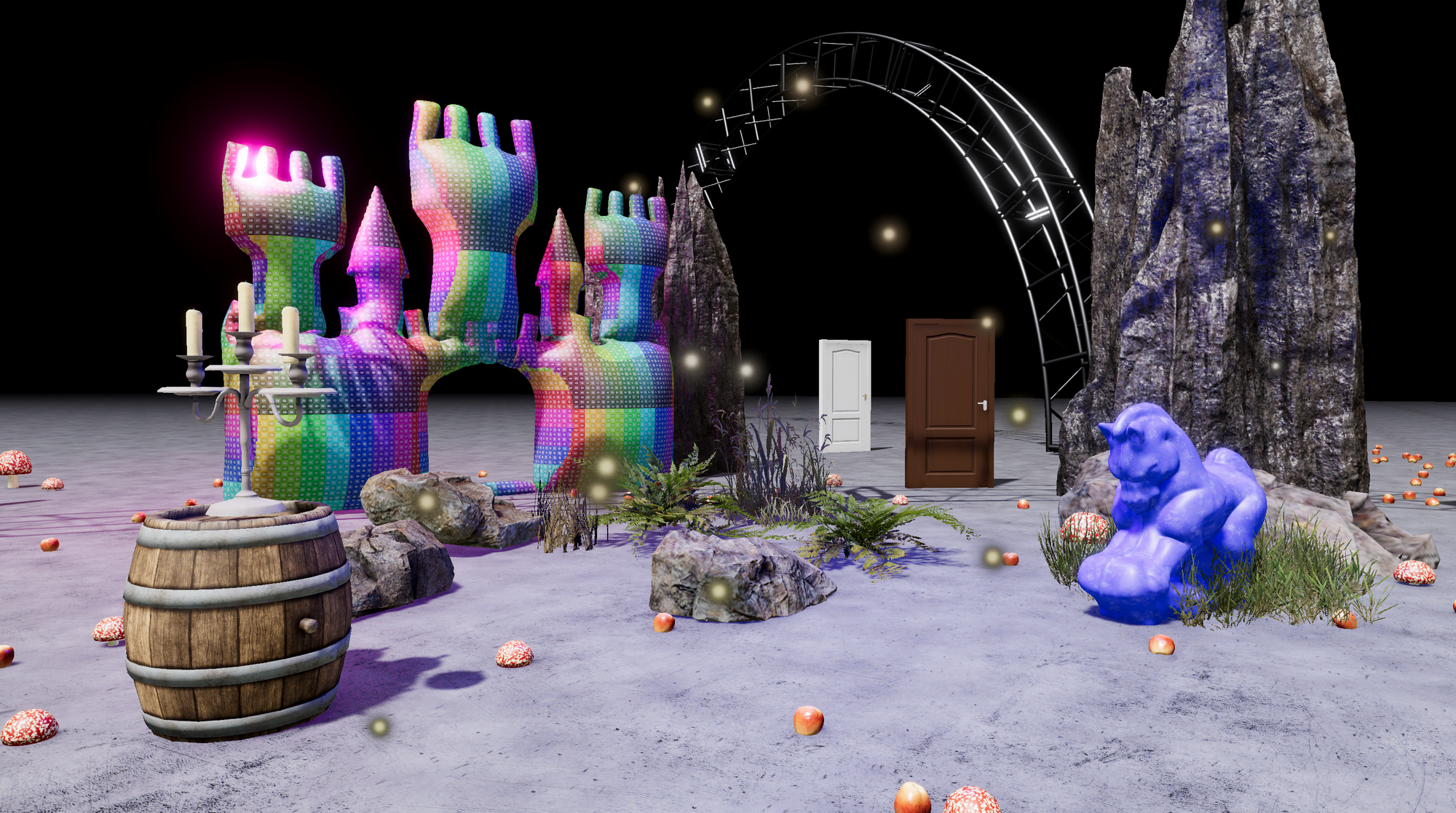 A key point of reference here is the branching narrative, one of game design’s best-known devices for producing the sensation of choice. Branching structures confront players with decisions that appear to shape the story’s direction, yet the menu of outcomes is authored in advance. The experience of agency is real enough at the level of feeling, but it is produced by architecture: pre-scripted paths, gated access, and an interface that presents constraint as freedom. In Side Quest, this logic becomes the exhibition’s underlying framework. The questions posed to the visitor imply psychological intimacy – identity, desire, motivation – while guiding them through a predetermined sequence of rooms, levels, and dreamlike environments. The work insists on a basic, often ignored fact: most “choices” are not expressions of interiority; they are responses to a designed situation.