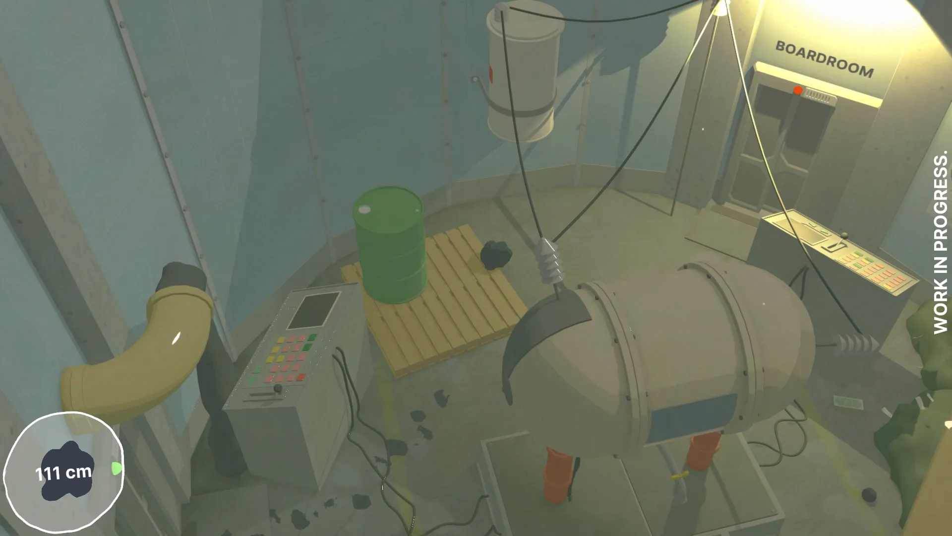 Elsewhere, the exhibition leaned into parody, sometimes productively, sometimes too comfortably. Peter Nichols’s Crude Oil had an appealing formal absurdity: you played as a puddle of petroleum escaping Big Oil, collecting mass, operating heavy machinery, flushing polluters down the drain. The blob was funny, mobile, and tactile, and the work’s tonal lightness prevented it from hardening into thesis. That the full game was set to release on Steam later in the summer was worth noting: it raised questions about where the gallery ended and the commercial storefront began, a tension the exhibition otherwise sidestepped. Which is to say: Art Games! catches the work mid-trajectory: not before the market, not after it, but during its transition between art context and storefront context. Not a dichotomy: a continuum.
