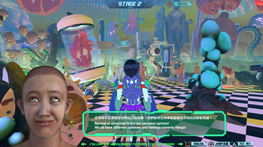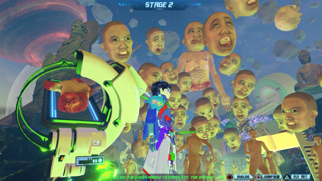 The Material World cycle occupies a pivotal place in this trajectory, amplifying Lu Yang’s interest in Buddhist philosophy while formalising the integration of interactive gameplay into their moving image installations. Material World Knight is less a “character” than a philosophical vessel, embodying the artist’s exploration of the body as transient, the self as process, and consciousness as endlessly mutable. By employing the aesthetics of gaming, anime, and cybernetics, Lu Yang translates metaphysical questions into experiential simulations.