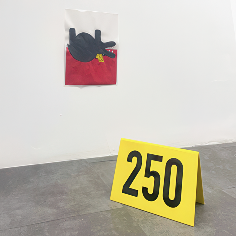 Within Cocaine Hippos Sweat Blood, this is consistent with Restrepo’s broader strategy. Works such as Fosa común and Escena del crimen invoke forensic language and imagery, confronting viewers with mass graves and police evidence markers while maintaining the same acidic palette and cartoon sharpness.