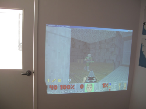 "Documentation of an installation/performance that has my mother and I playing the first-person shooter video game Doom together online." (Matthew Williamson)