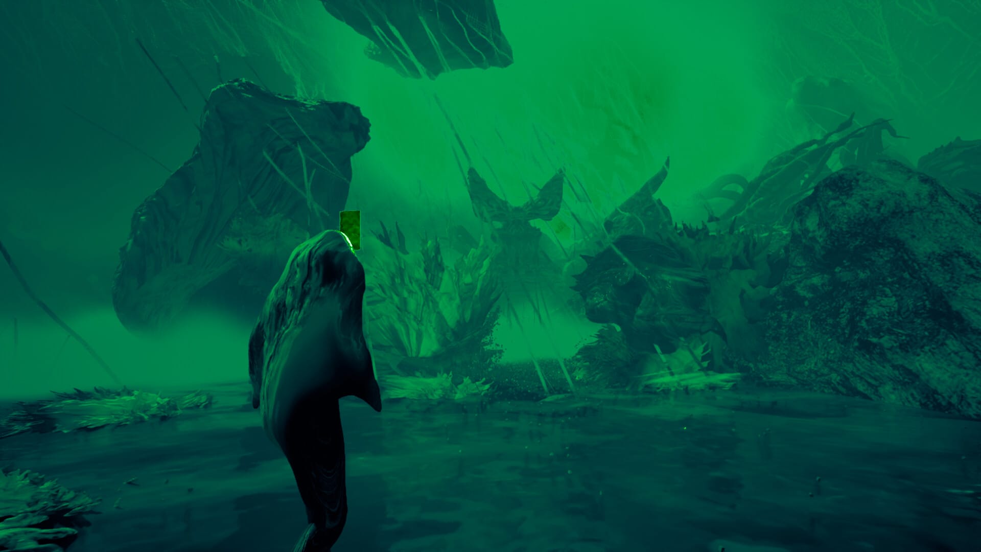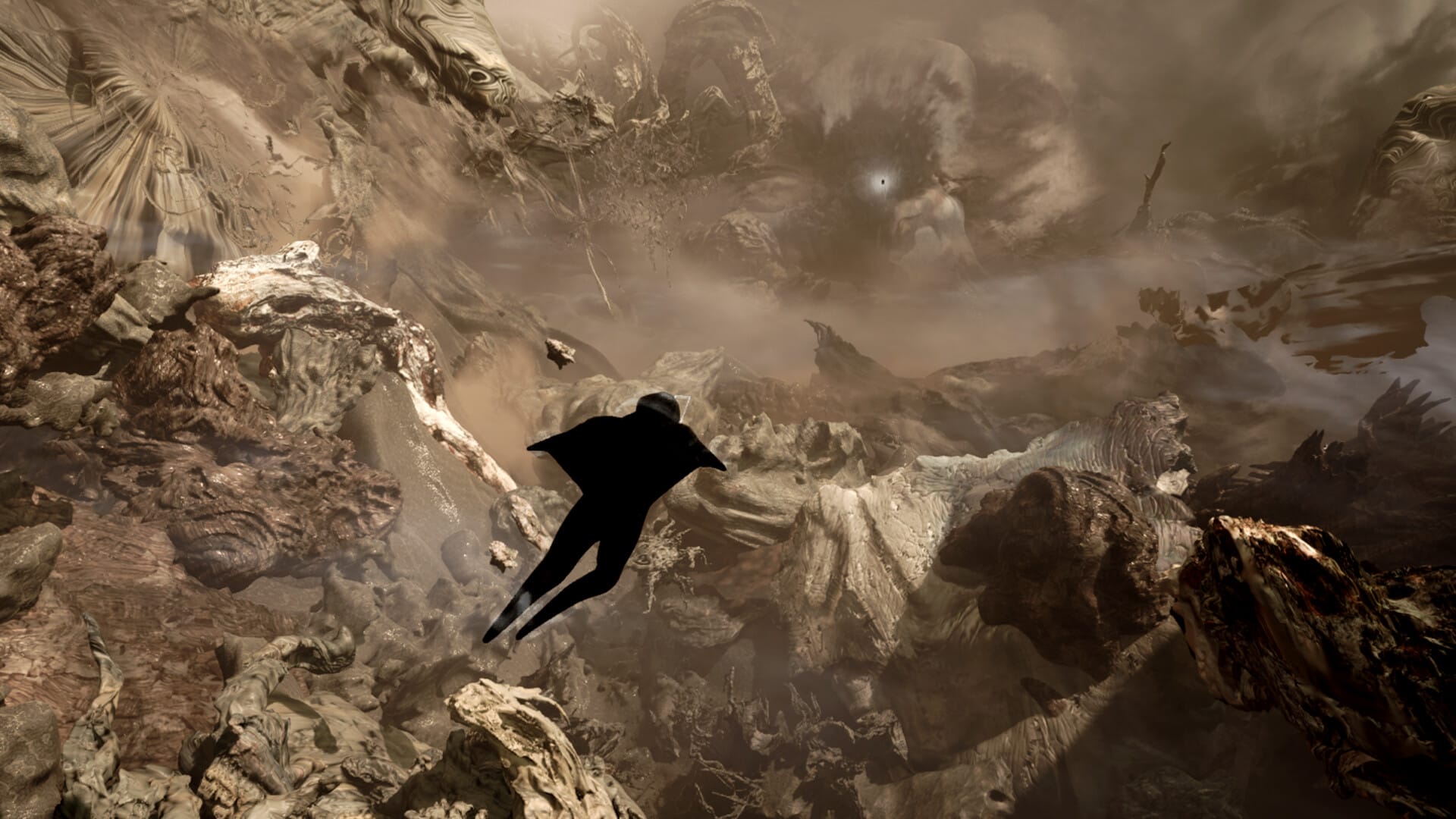 A third component extends the project beyond the gallery. Camoflux Recall Grotto (2025–26), commissioned for the Whitney’s artport platform and acquired into the collection, is a browser-based game in which the player, inhabiting the perspective of an organic drone, gathers water and sunlight to cultivate cyberflora across a primordial landscape, whereupon holographic memories surface from the blooming vegetation. Growth here operates not as cumulative progression but as feedback: the game’s tempo fluctuates with seedling density, slowing to meditative quiet or accelerating toward ecological overload.