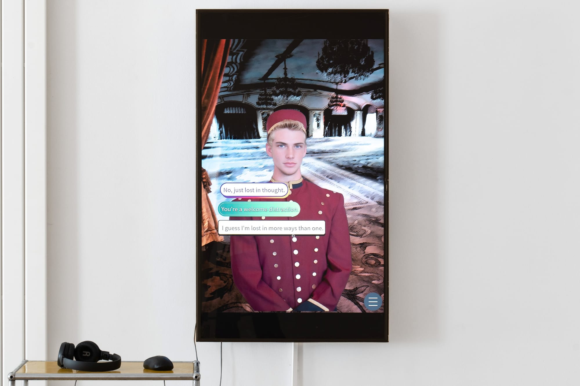 Martin’s exhibition arrives at a moment when visual novels and interactive fiction are gaining visibility beyond gaming culture, yet they remain relatively underexplored in art galleries. Your Demise suggests that this omission is a missed opportunity. By treating the click as both readerly gesture and game input, Martin connects literary form, fan cultures and the scripted freedom of games to broader questions about labour, sexuality and control.